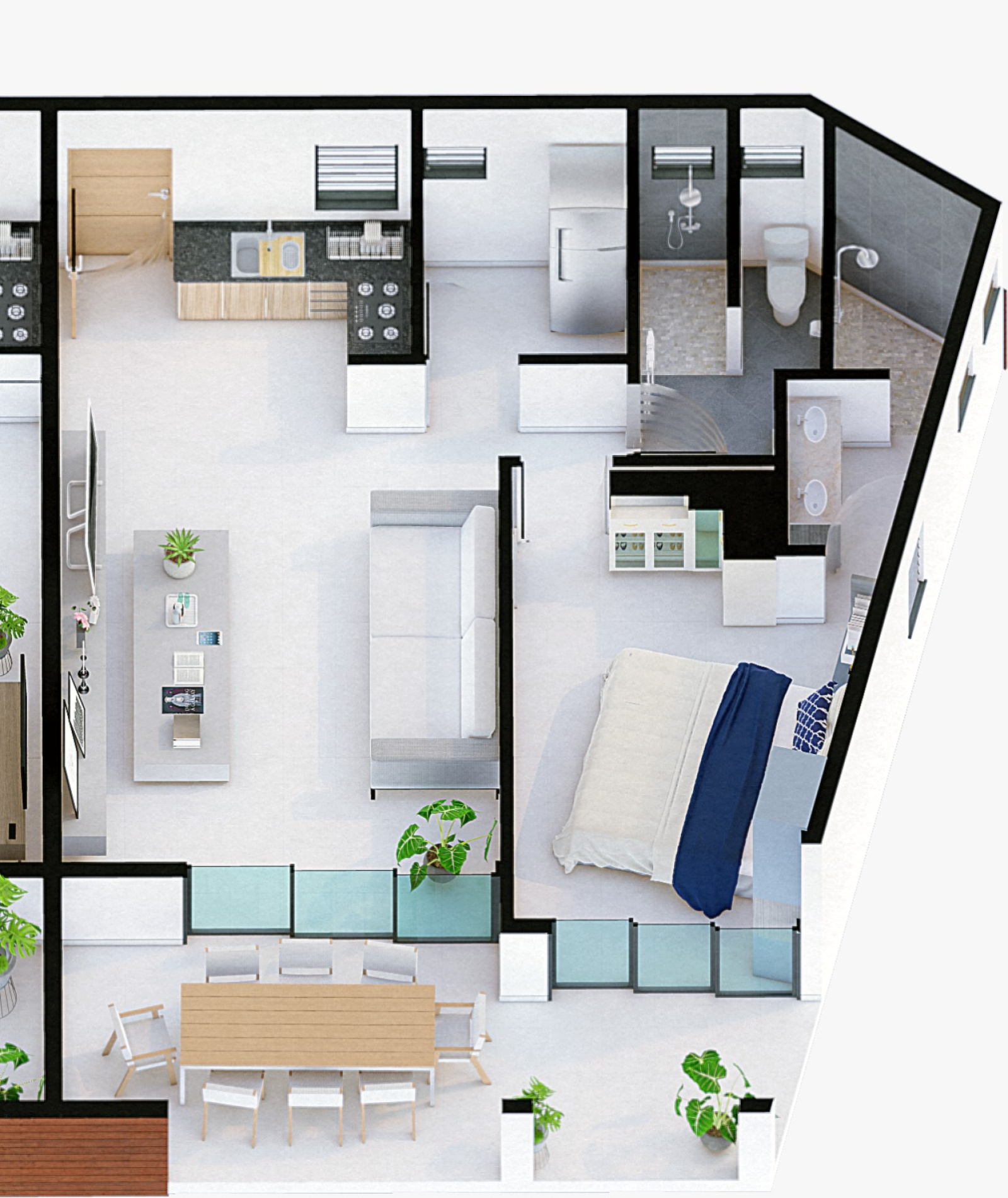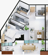 Appartement 2 pièce(s) 1 chambre(s) 90 m²
