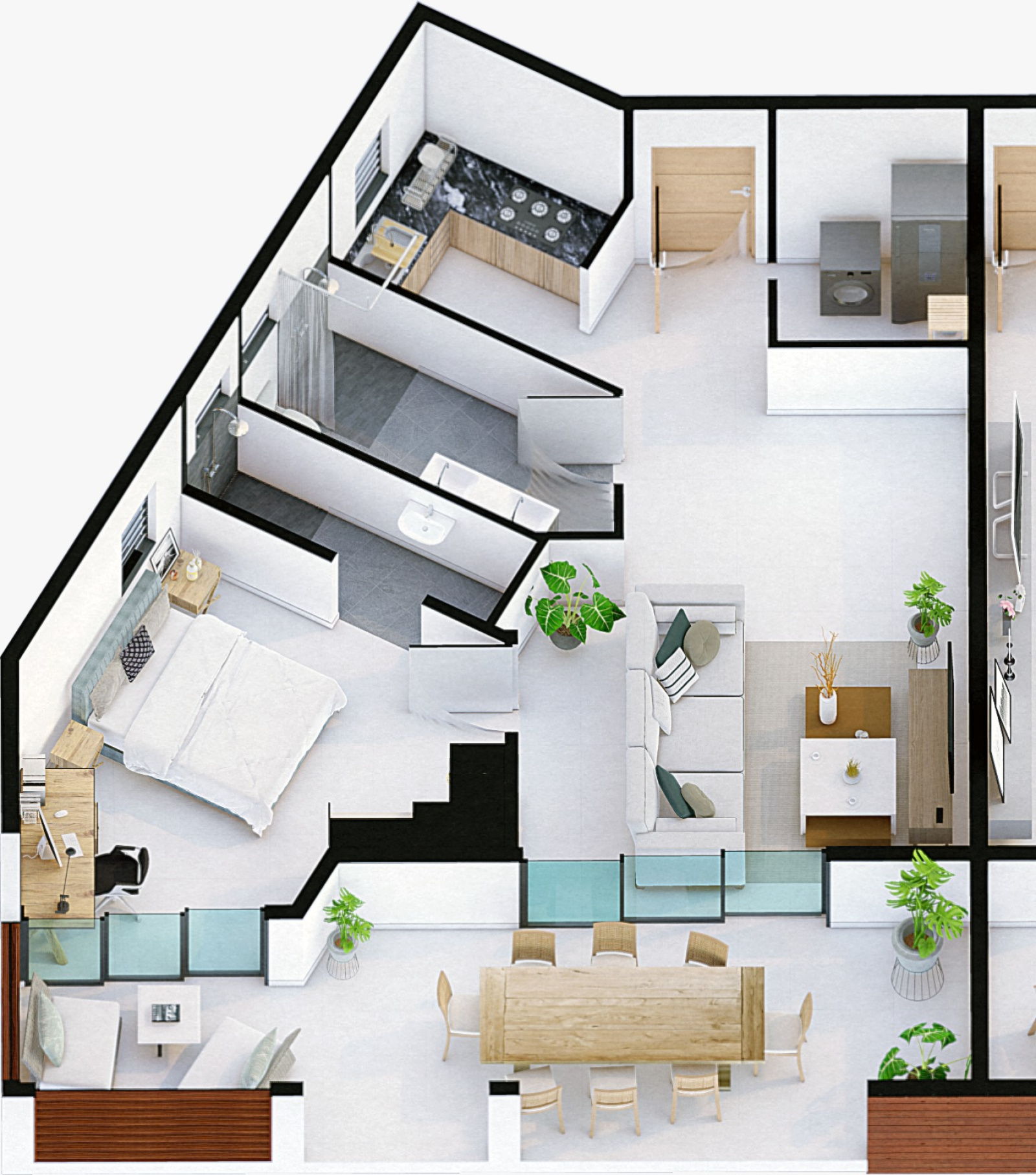 A l'exterieur, l'appartement dispose d'une terrase offrant une vue sur un jardin privé, idéale pour se détendre en plein air.