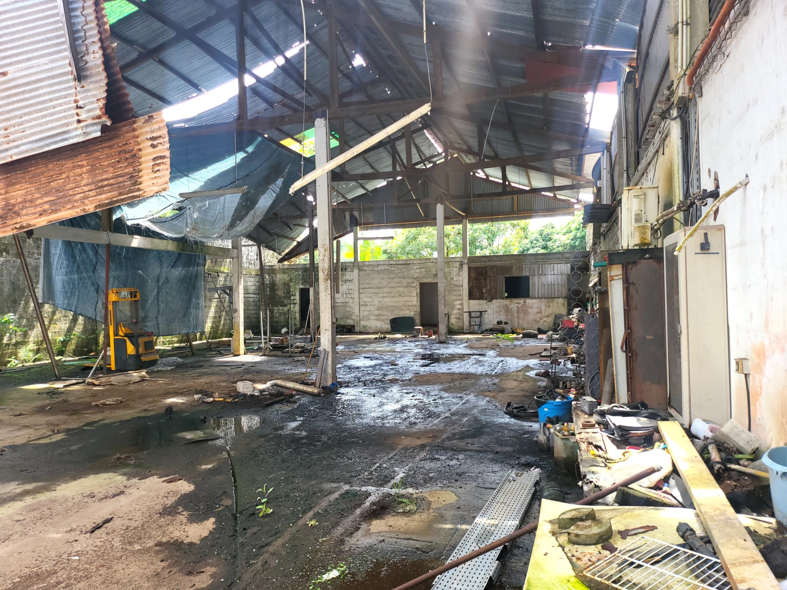 Affaire à saisir ! Sur un terrain de 2011m², des travaux certe mais du potentiel, situé à 1900m du bourg de Matoury à la campagne un hangard de 380m² a rénover, charpente, toiture a changer, grand T2 mitoyen a rénover, une maision de type 4 mitoyenne a rénover, et une servitude a créer.